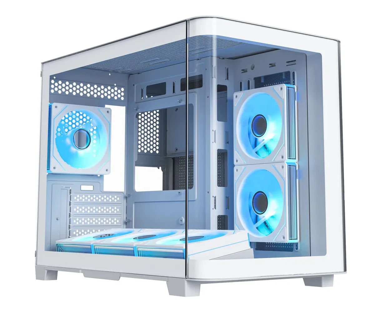 Корпус XASTRA QR500M 6ARGB-FM-C10-UC White (QR500M-6FM12A-C10-UC-WH) mATX/Aquarium/2 Curve Glass /6x120mm ARGB PWM FM fans/Argb+PWM HUB 10port/Type-C