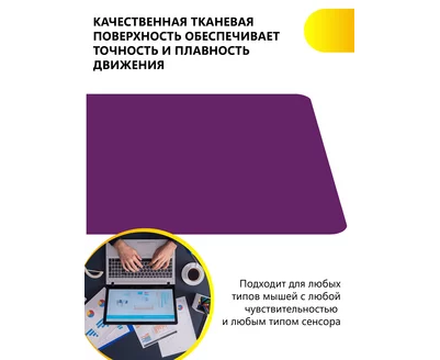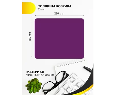 Компьютерный коврик для мышки из серии NN обладает гладкой тканевой поверхностью, которая обеспечивает точность и плавность движения-мышь скользит быстро и четко. Не скользящая резиновая основа надёжно фиксирует коврик на столе. Небольшой вес и хорошая гибкость позволят Вам взять коврик для мыши куда угодно для комфортного пользования ноутбуком. Подходит для оптических и лазерных мышей с любой чувствительностью и любым типом сенсора. При работе с ковриком вы получите максимальный комфорт независимо от поверхности стола. Так же коврик минимизируе шум при перестановке мышки и позволяет работать ночью. Мы рекомендуем использовать коврик для мышки, чтобы продлить срок ее службы, а так же при этом не стирается поверхность стола. Полезный аксессуар для ПК. Размер: 220x180мм, толщина 2 мм. Материал: ткань и резиновое основание. Коврик для мышки игровой, фиолетовый.