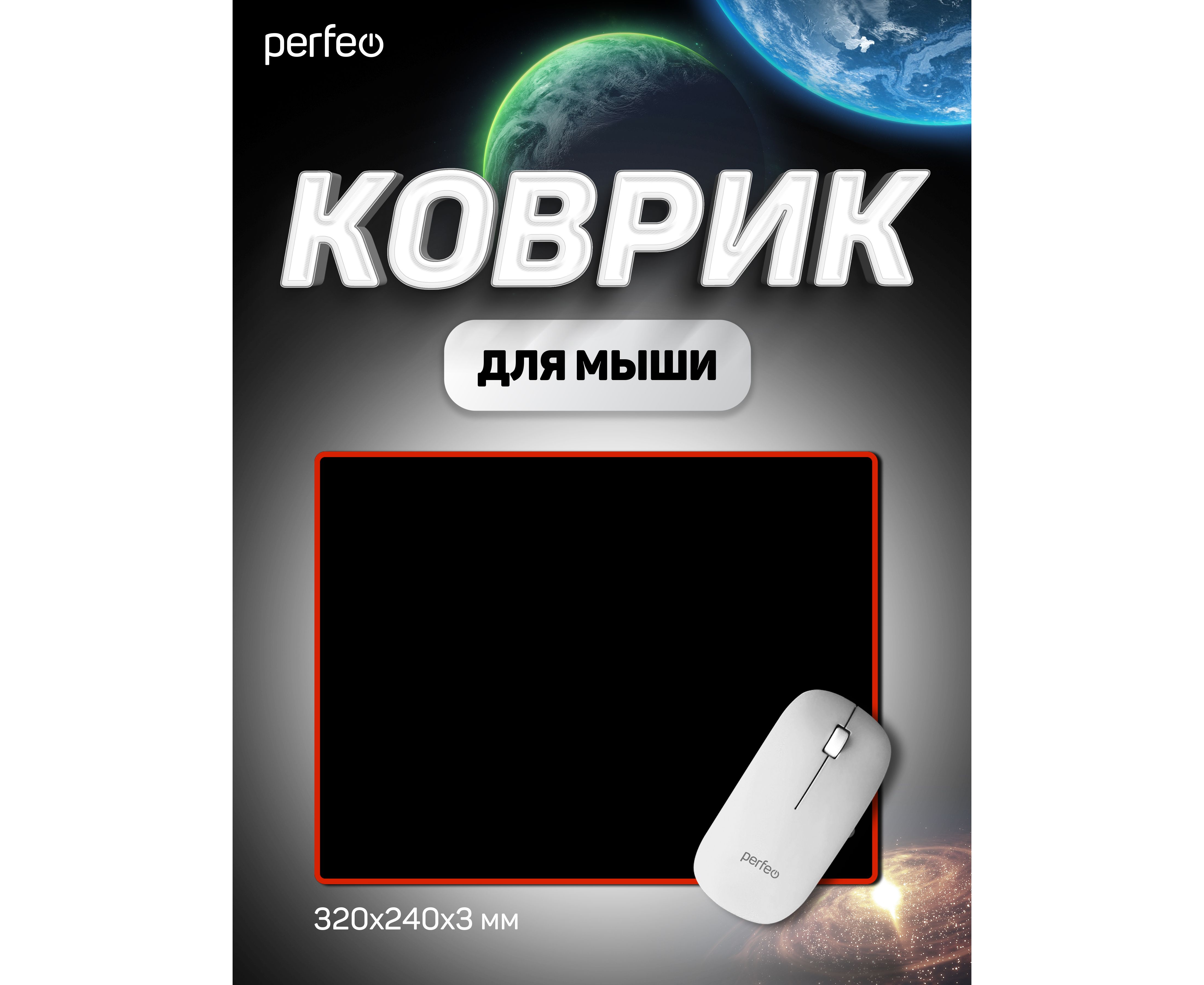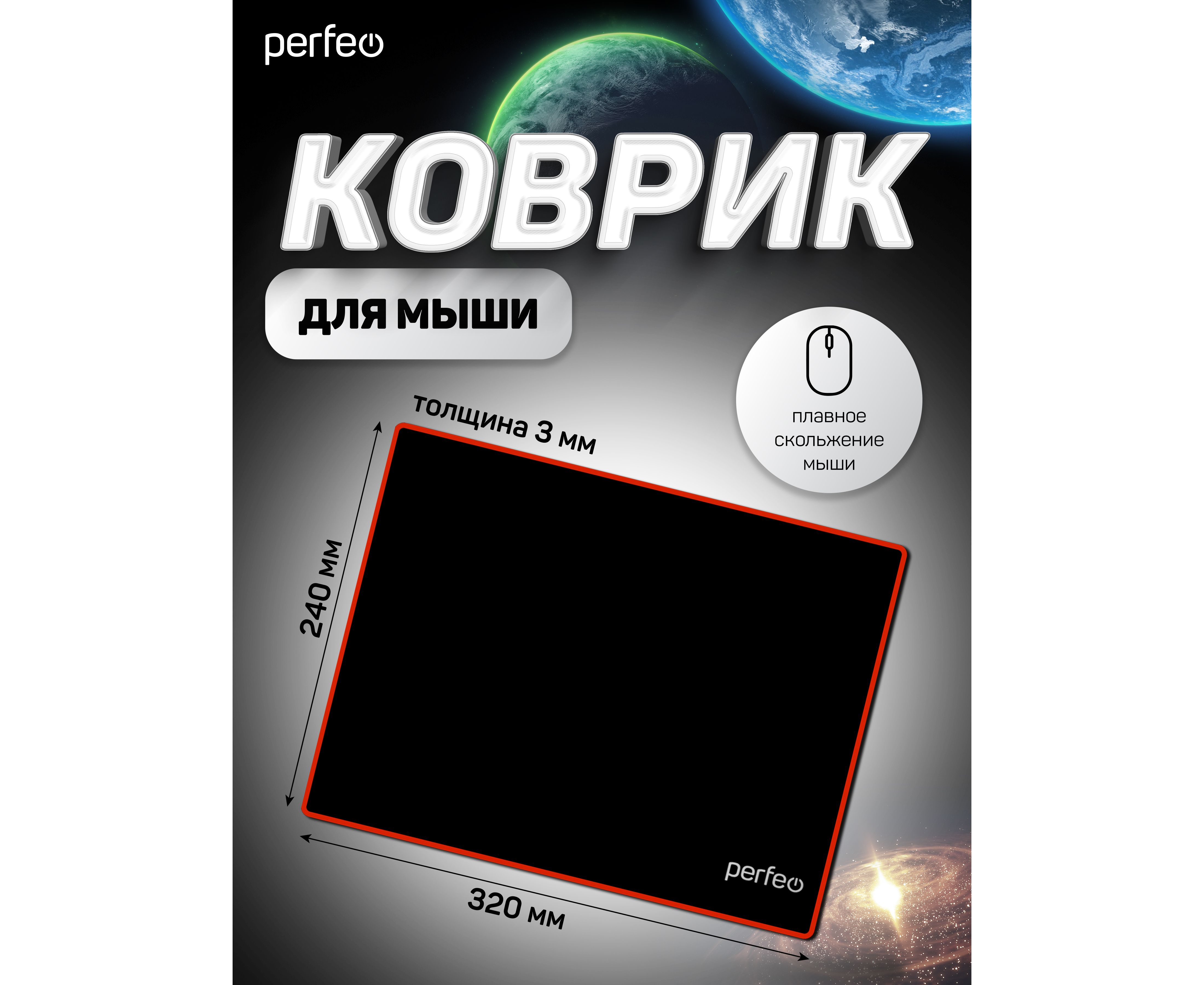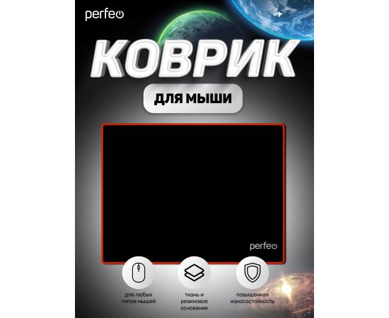 Коврик для компьютерной мыши Perfeo "Black", "Красный", (240*320*3 мм), ткань+резиновое основание