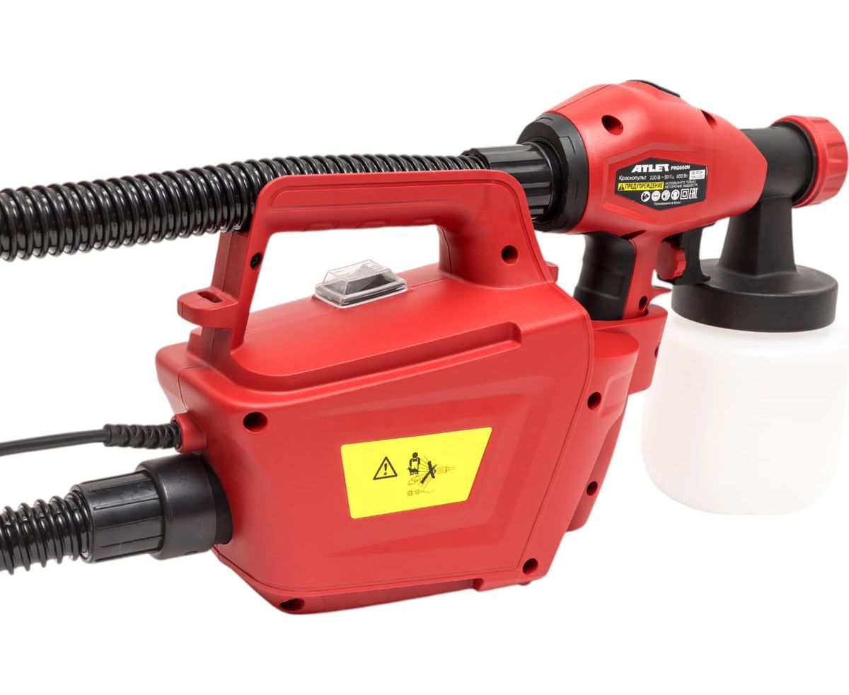 Электрический краскопульт ATLET PRG650N подходит для быстрого и легкого нанесения лакокрасочных материалов. Максимальная вязкость 80 DIN позволяет работать с красками, морилками, лаками, грунтовками, маслами, антисептиками и пропитками. Производительность составляет 0,8 л/мин. С высокогибким шлангом длиной 1,8 м для большой маневренности.