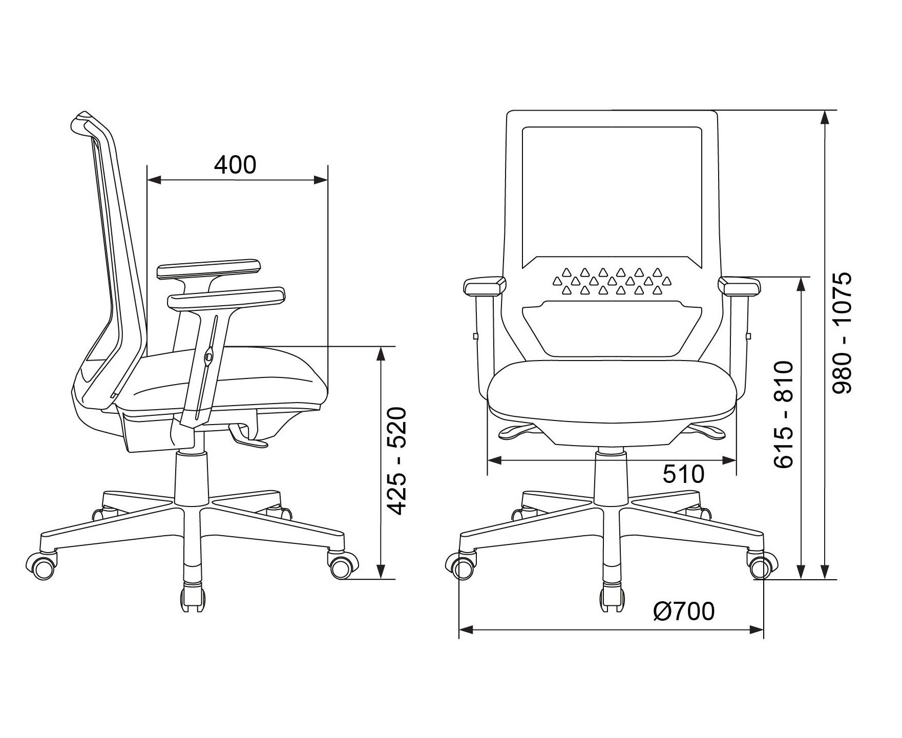 Высота с подлокотниками MIN