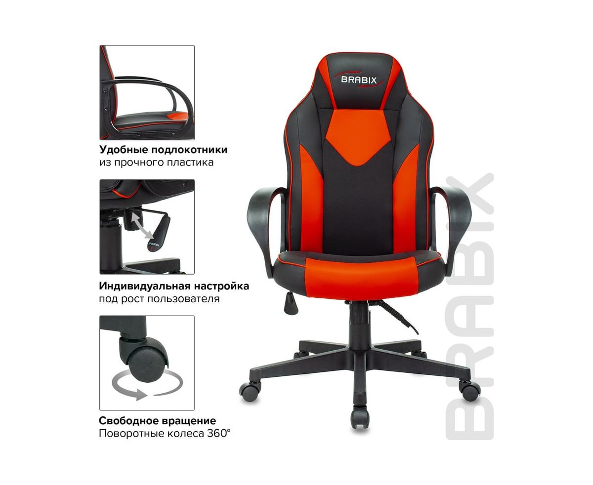 Компьютерное кресло BRABIX Game GM-017, экокожа/ткань, черное/красное 532642 с плотной набивкой и вниманием к деталям. Спортивный дизайн серии Alpha подчеркивает принадлежность к особой касте компьютерных кресел.