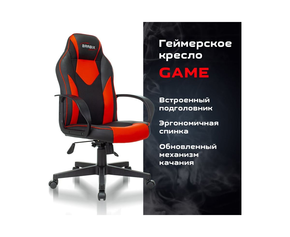 Кресло игровое BRABIX Game GM-017 (532642) экокожа/ткань, черное/красное