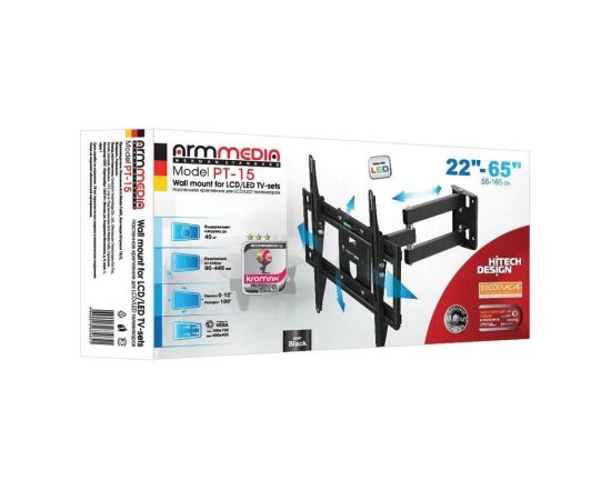 32"-55" Кронштейн Arm Media PT-15 NEW Наклонно-поворотный черный макс.35кг