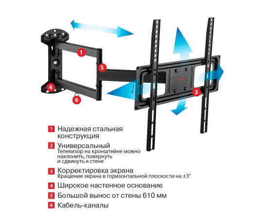 2. Хороший вынос дает возможность прижимать телек к стене и также выдвигать его с поворотом 90 градусов в обе стороны.