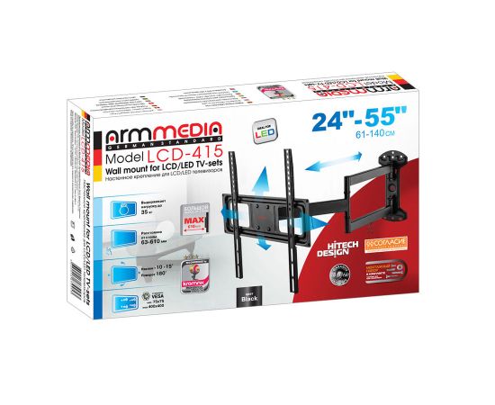 Кронштейн для телевизора Arm Media LCD-415 черный 24"-55" до35кг поворотно-выдвижной и наклонный