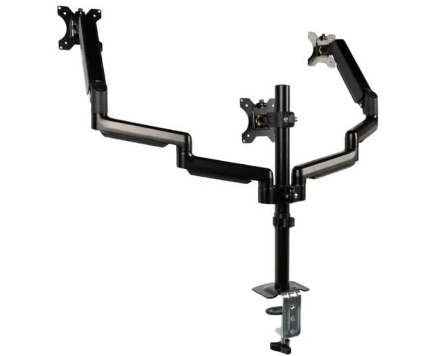 Данный настольный кронштейн разработан специально для создания многомониторных конфигураций. Он надежно удерживает сразу три экрана с диагональю от 10 до 32 дюймов каждый, что открывает безграничные возможности для профессионалов в самых разных областях. Трейдеры, аналитики, программисты, дизайнеры, геймеры — каждый оценит преимущество одновременной работы с несколькими источниками информации без необходимости постоянно переключаться между окнами. При этом система рассчитана на солидную нагрузку до 10 килограммов на каждую точку крепления, гарантируя устойчивость и безопасность даже для достаточно крупных моделей мониторов.
