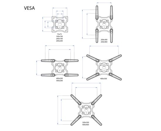 Поддержка крепления VESA 75×75, 100×100, 200×100, 200×200, 200×300, 300×200, 400×200, 300×300, 400×300, 400×400