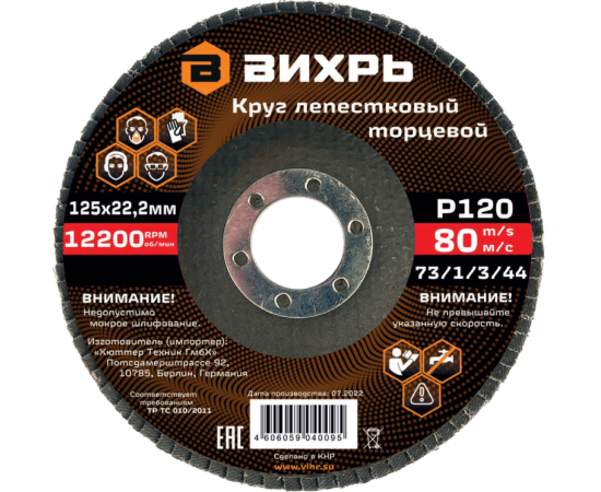 Круг лепестковый торцевой Вихрь 73/1/3/44 125х22,2мм, Р120