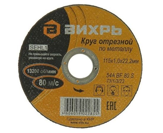 Круг отрезной по металлу Вихрь 115х1,0х22 мм 73/1/3/23