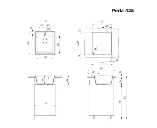 Кухонная мойка MAUNFELD Perla 425 MFQS-425DGR темно-серый