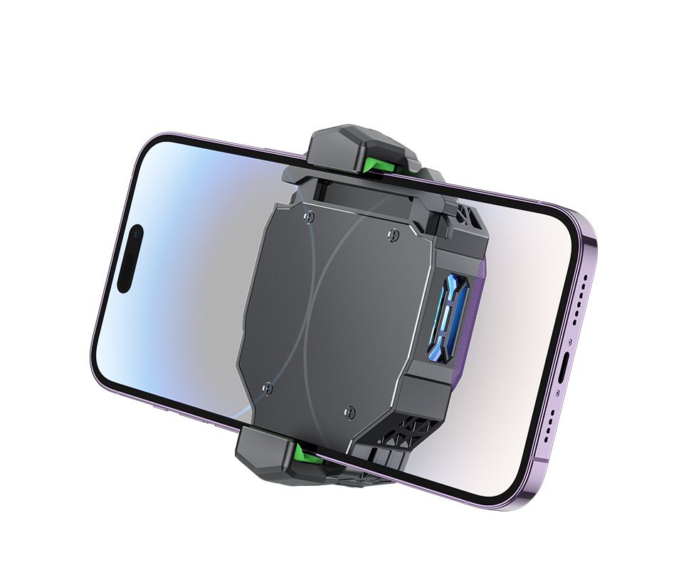 Мощный охлаждающий вентилятор с радиатором, который прилегает к задней крышке смартфона при закреплении. Предотвращает перегрев телефона при игре на смартфоне, тем самым продлевая срок службы телефона и аккумулятора.