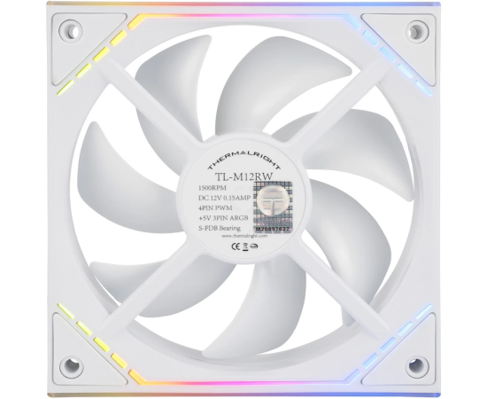 Кулер Thermalright TL-M12RW, Reverse (124x120x25mm, 4-pin PWM, ARGB, 42.6CFM, 23.2dBA, 1500RPM, White)