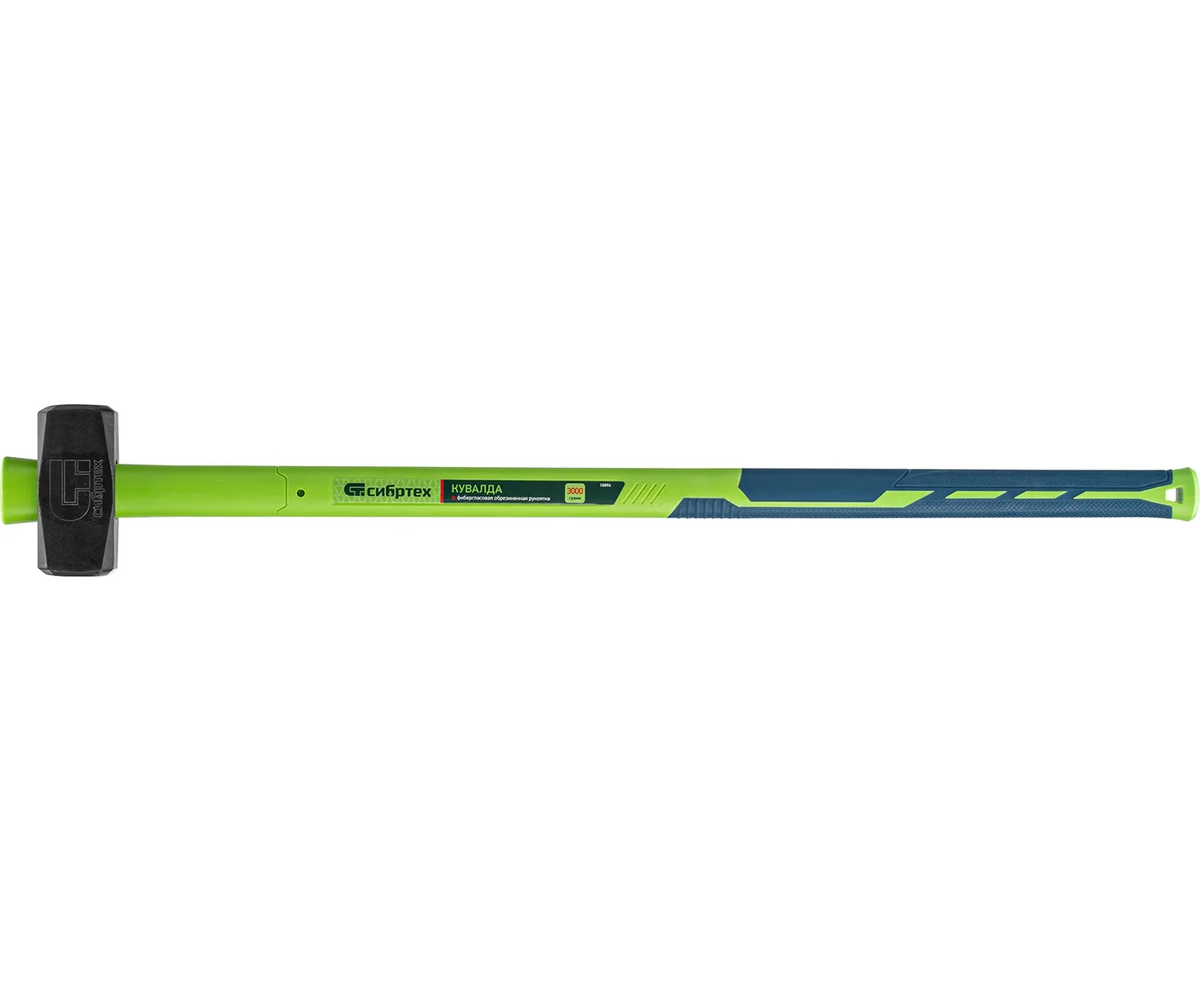 Кувалда Сибртех 10894 длиной 890 мм и весом 3000 г, с фибергласовой обрезиненной рукояткой, предназначена для демонтажных работ — разрушения конструкций из камня, кирпича, бетона. Удлиненная рукоятка позволяет наносить удары большой силы, а прочный кованый боек не подвержен деформациям. Кувалда рекомендована для профессионального применения.