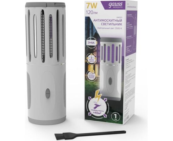 Антимоскитный светильник GAUSS Mosquito, 7 Вт, 3 AA, 1/40 GMQ03 – световое устройство, которое защищает от летающих насекомых как внутри помещения, так и снаружи, например, в беседке, террасе или туристической палатке.