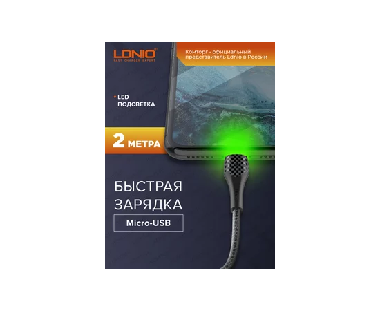 Кабель LDNIO LS522/ USB + Micro/ 2m/ 2.4A/ LED подсветка/ медь: 112 жил/ серый