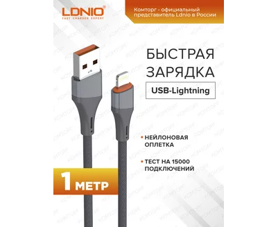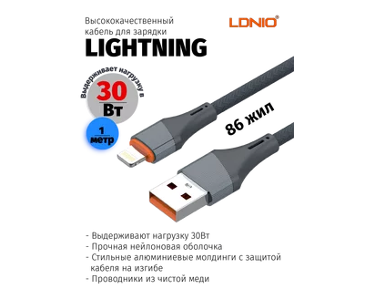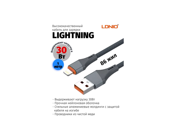 Кабель LDNIO LS631/ USB-Lightning/ 1m/ 30W/ медь: 86 жил/ Нейлоновая оплетка/ Серый