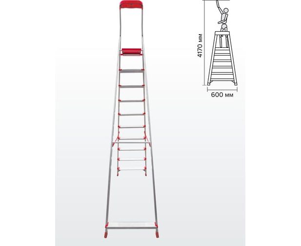 Профессиональная стремянка Новая Высота NV3118, 1x10 ступеней 130 мм, органайзер 3118110 предназначена для интенсивного использования.