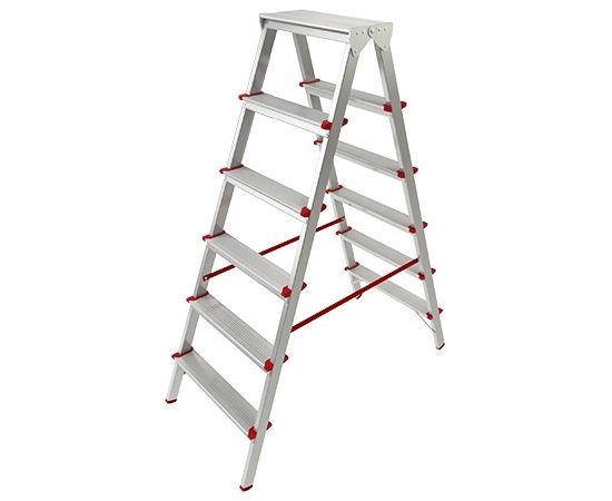 - ступени с двух сторон позволяют работать не переставляя стремянку тем самым экономя время;