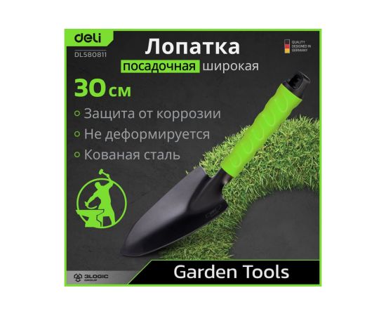 Лопатка садовая Deli DL580811 широкая длина 30 см, защита от ржавчины и коррозии, противоскользящая рукоять