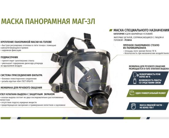 Технические характеристики панорамной маски МАГ 3Л категория 3 102-121-0002