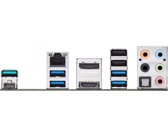 Разъёмы на задней панели : 2 x USB 2.0, 4 x USB 3.2 Gen1, USB 3.2 Gen2, USB 3.2 Gen2 Type-C, HDMI, DisplayPort, RJ-45, S/PDIF (оптический)