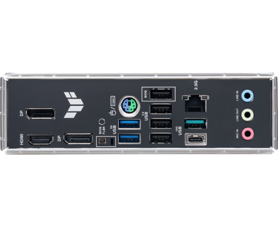 PS/2, 4 x USB 2.0, 2 x USB 3.2 Gen1, USB 3.2 Gen2, USB 3.2 Gen2 Type-C, HDMI, 2 x DisplayPort, RJ-45