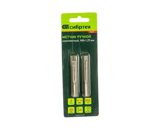 Метчики ручные СИБРТЕХ 76622 М8 х 1,25 мм, 2 шт.
