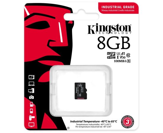 MicroSD 8GB Kingston Class 10 Industrial Temp pSLC A1 (100/80 Mb/s) без адаптера