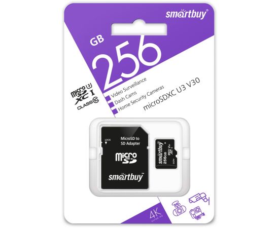 MicroSDXC 256GB Smart Buy Class 10 UHS-I V10 для видеонаблюдения + SD адаптер