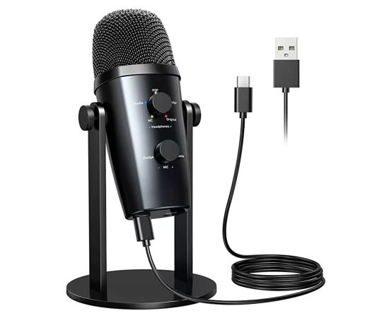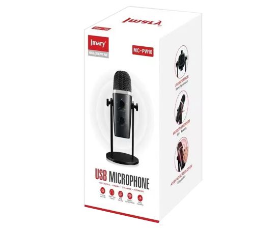 Микрофон универсальный кардиоидный JMARY MC-PW10, Type-C+Bluetooth+AUX, черный