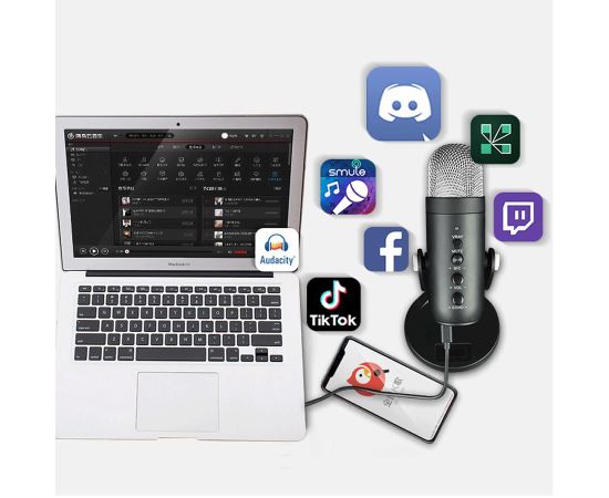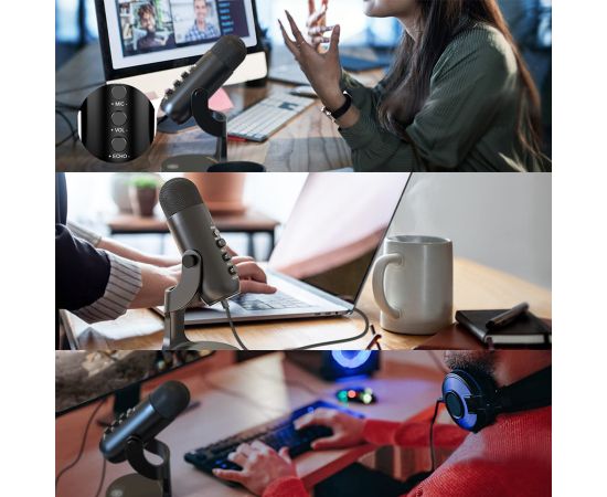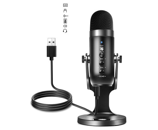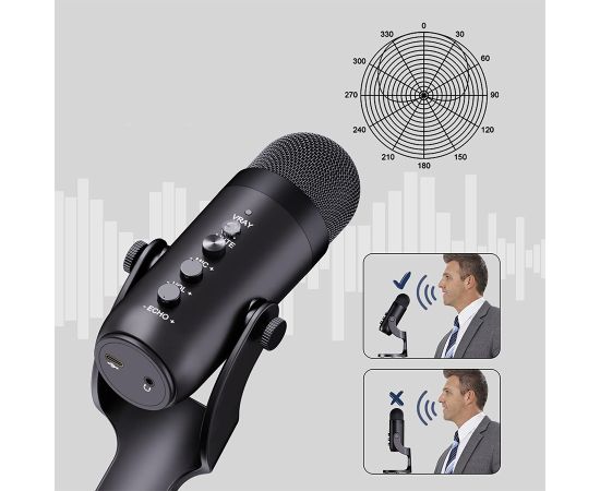 Микрофон универсальный кардиоидный JMARY MC-PW8, USB/Type-C+Jack 3.5 mm, черный