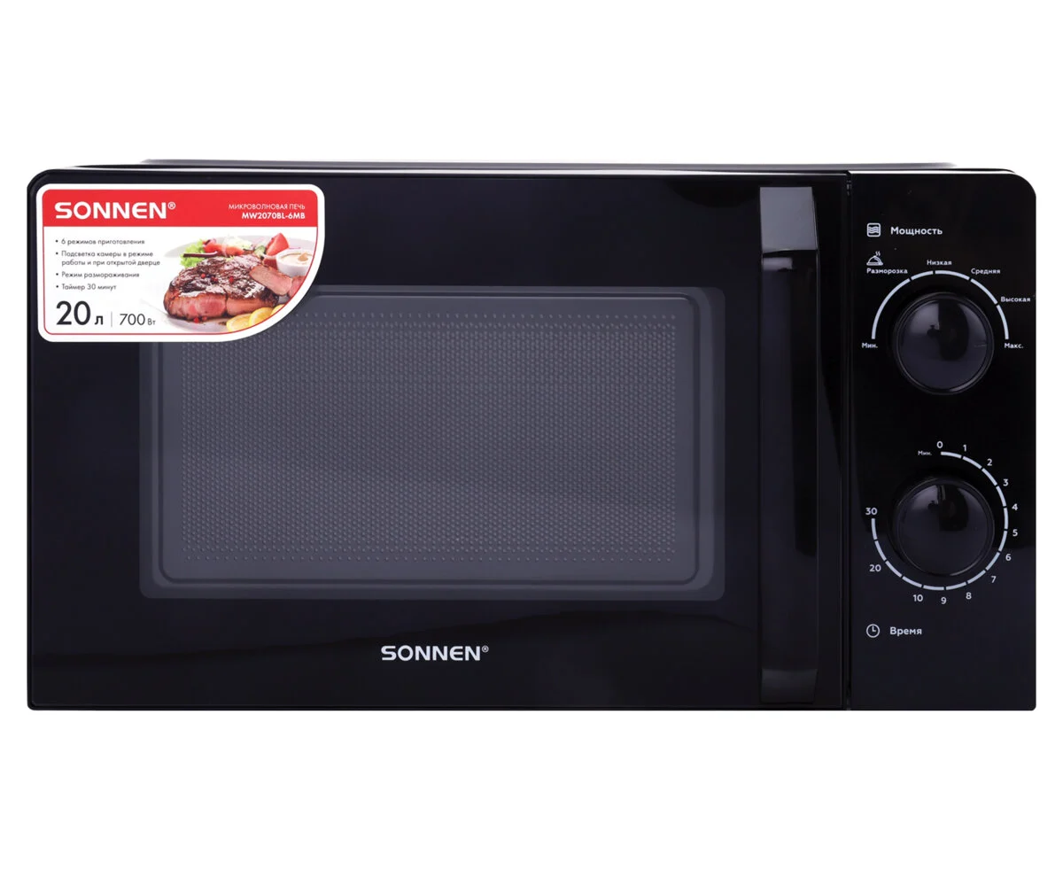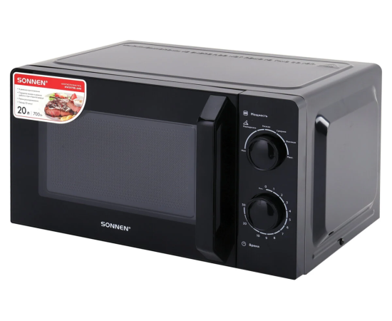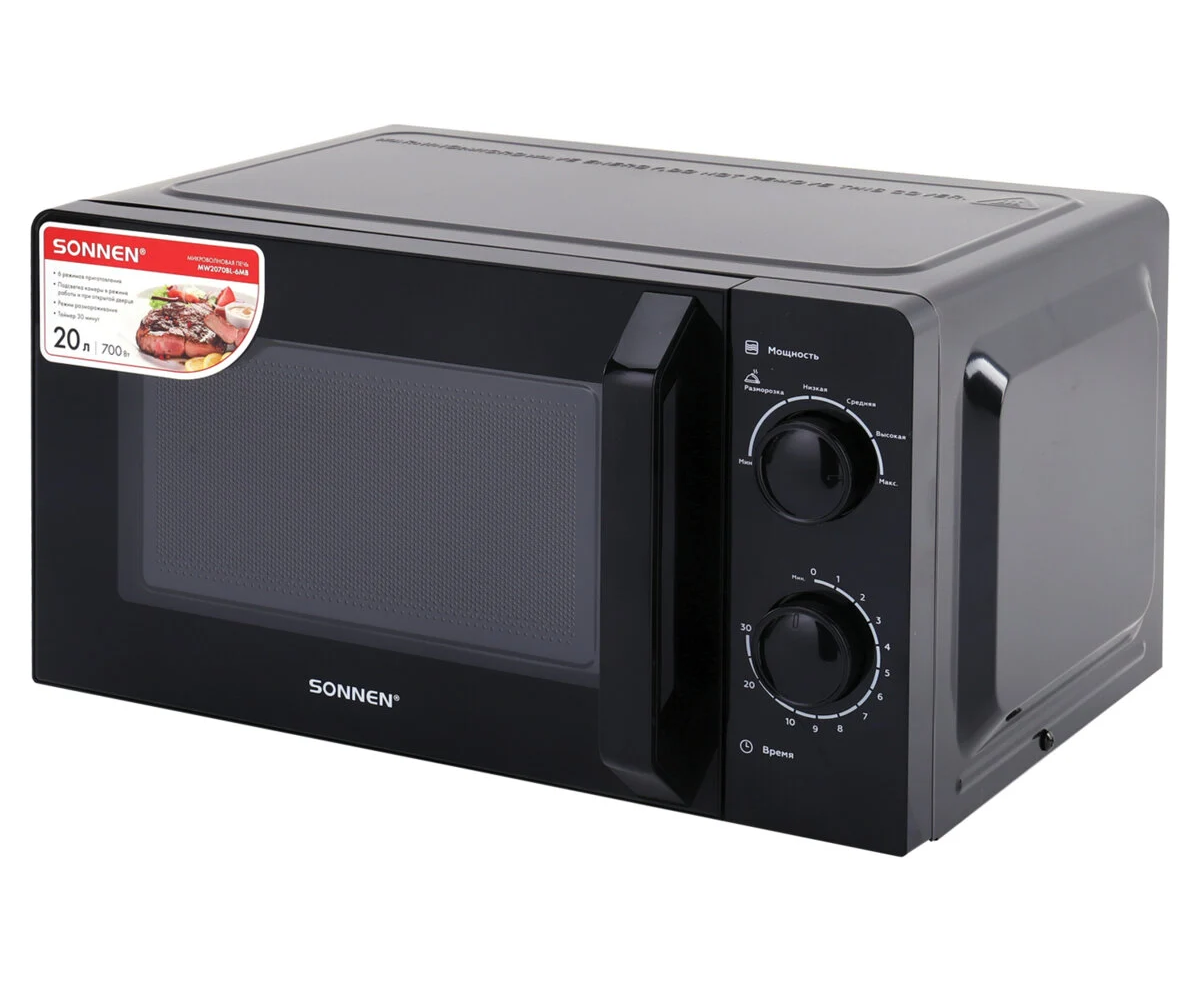 Микроволновая печь SONNEN MW2070BL-6MB, 20л, 700Вт, таймер, механическое управление, ручка, черная