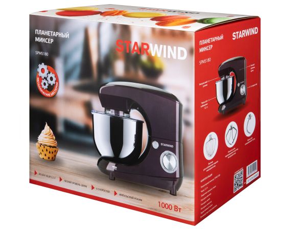 Планетарный миксер Starwind SPM5180 – функциональная модель, которая гарантирует быстрое смешивание ингредиентов и устранение комочков в креме, муссе и соусе. Станет помощником каждой хозяйке, которая оценит его по достоинству. Мощность современного планетарного миксера составляет порядка 1000 Ватт, а объем предусмотренной в конструкции чаши равен 5,5 литра. Имеется шесть скоростных режимов, а принцип действия основан на планетарном вращении. Корпус изготовлен из прочного пластика, выполнен в ежевичном цвете. В комплекте есть три насадки, ножки прорезиненные.