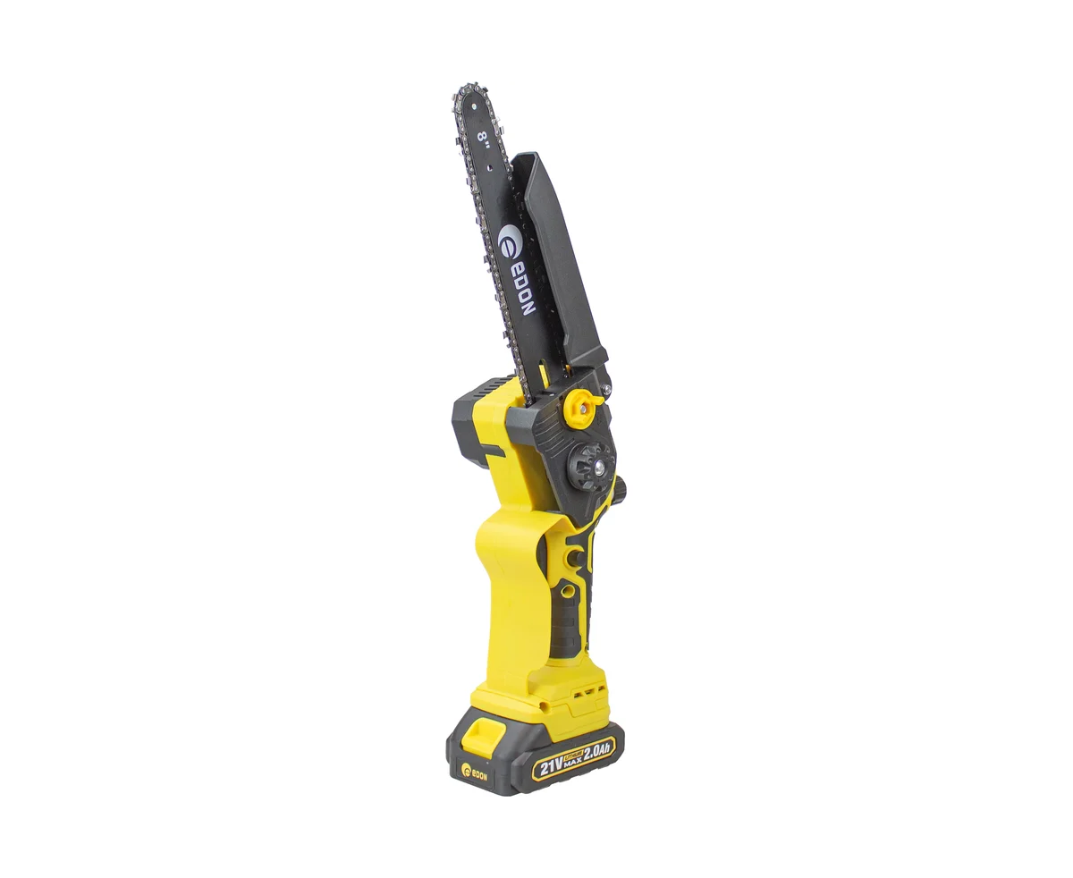 Мини-цепная пила аккумуляторная бесщеточная EDON Super NS-21/8BL 35531 предназначена для распила дерева, фанеры, ДСП. Использование мини-цепной пилы по назначению предполагает соблюдение инструкций по эксплуатации, а также необходимое техническое обслуживание. Инструмент предназначен для бытового применения. Преимущество бесщеточного двигателя: большая износостойкость инструмента. Отсутствие щеток снижает пожароопасность инструмента. Бесщеточный двигатель может в считанные секунды развить максимальную скорость за счет своего строения. В работе не подвержен перегреву.