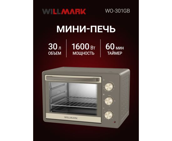 Мини-печь WILLMARK WO-301GB бежевый/серый