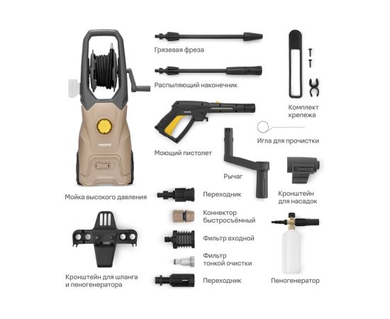 Минимойка Nocord NPW-220 (902210.NPW-2200.170.450.RA-2) 2200Вт, 170 бар-130 бар, 450 л/час, грязевая фреза, кабель 5 м, шланг 8м, колёса