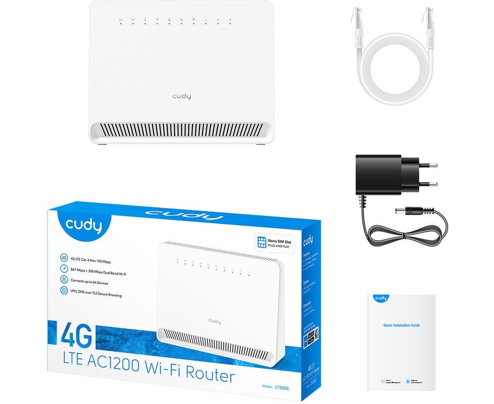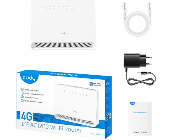 Модем CUDY AC1200 (LT500E) Wi-Fi 4G LTE-Cat4 Router, AC1200 Wi-Fi, build-in 4G LTE modem, 4 10/100M RJ45, Nano SIM, 300Mbps at 2.4GHz + 867Mbps