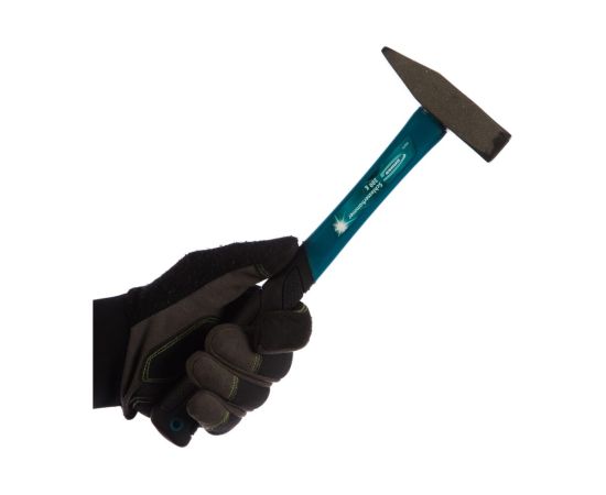 Слесарный молоток оснащен удобной фибергласовой обрезиненной рукояткой, благодаря чему понижается риск выскальзывания молотка из руки во время работ;