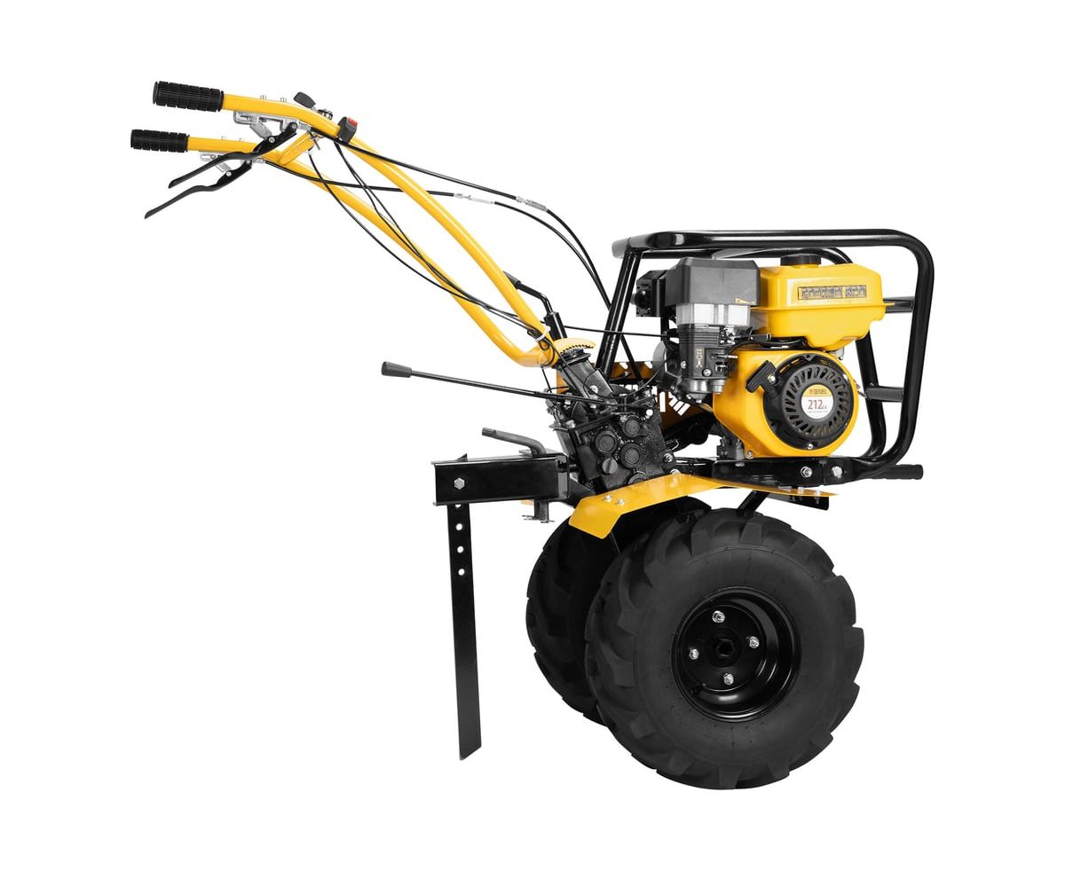 Повышенная проходимость — мотоблок оснащен тракторными пневматическими колесами.