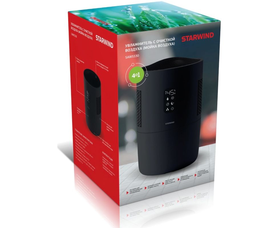 Дышите чистым и увлажненным воздухом круглый год с помощью мойки воздуха STARWIND! В современном мире чистый воздух становится роскошью – транспорт, промышленность, активное строительство и расширение мегаполисов негативно влияют на состояние экологии городов и стран. Для снижения содержания количества загрязняющих компонентов в воздухе важно создавать и поддерживать оптимальную влажность воздуха 40-60% и производить постоянную очистку воздуха.