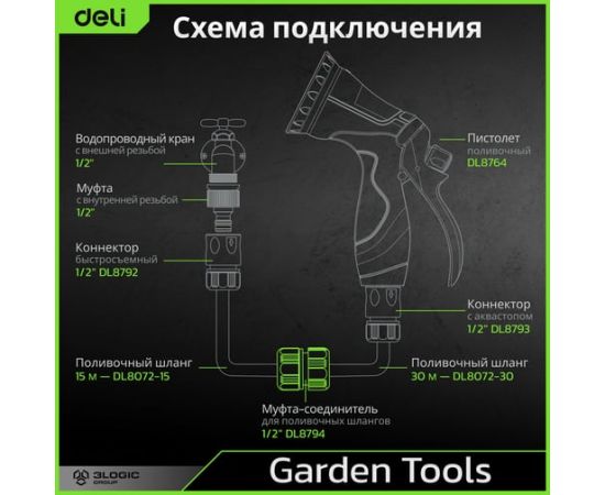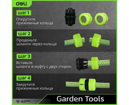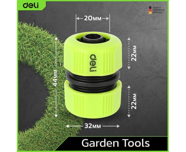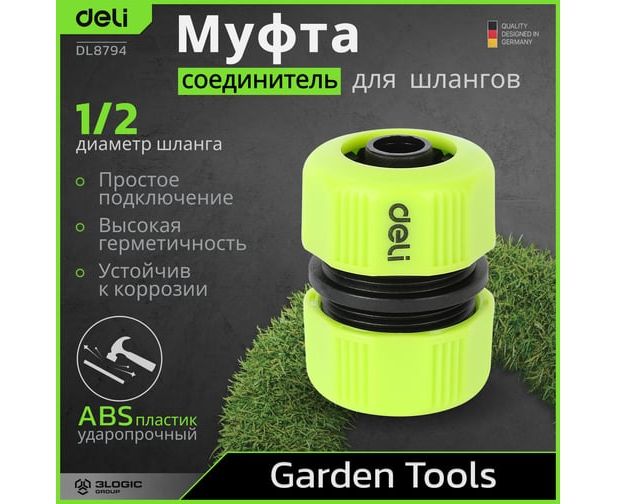 Муфта-соединитель Deli DL8794 - это удобное и надежное устройство, разработанное для соединения двух поливочных шлангов диаметром 1/2 дюйма.