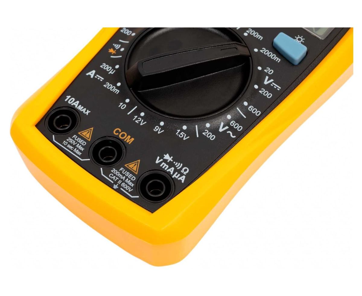 Портативный мультиметр включает в себя несколько функций и набор измеряемых параметров. Измеряет постоянное и переменное напряжение, постоянный ток и сопротивление в цепи. А также с помощью данного прибора можно проводить тестирование диодов и батареек.