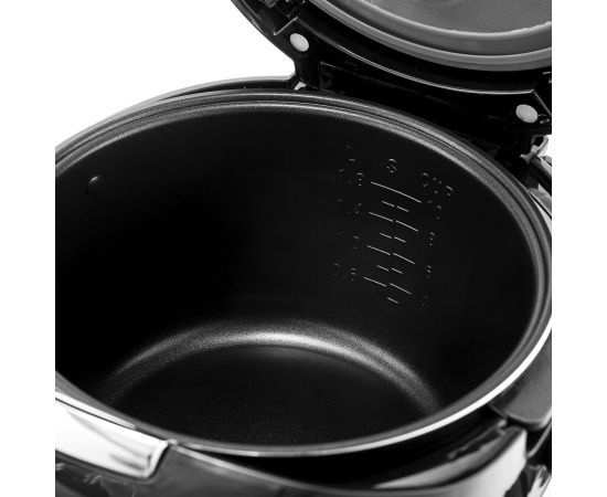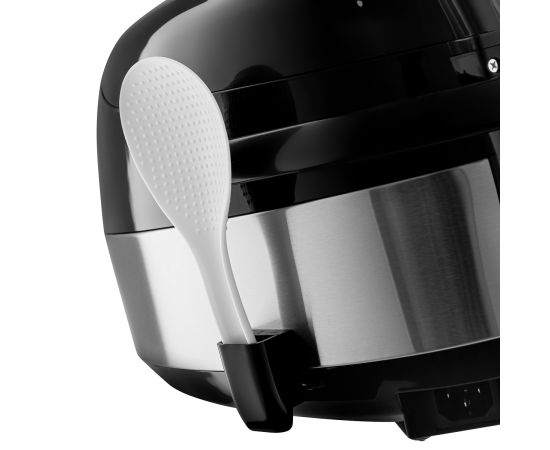 Сенсорное управление. Многофункциональный LED-дисплей. Съемная крышка и клапан выпуска пара. Корпус из высококачественного пластика. Таймер 24 часа, позволяющий приготовить блюда к назначенному сроку. Поддержание температуры 12 часов. Звуковой сигнал по окончании работы. Вставка для приготовления на пару, мерный стакан, ложка в комплекте, вставка для фритюра. Чашу и аксессуары можно мыть в посудомоечной машине.