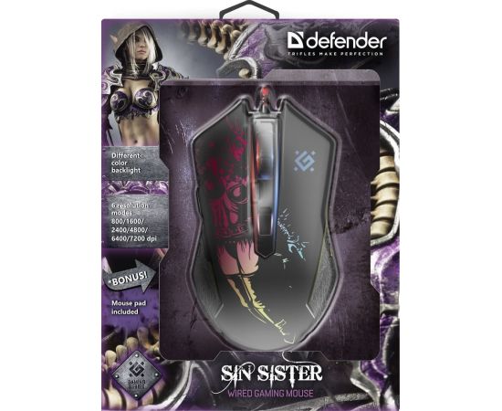 Мышь игровая DEFENDER проводная игровая Sin'Sister GM-933, 52933, черный