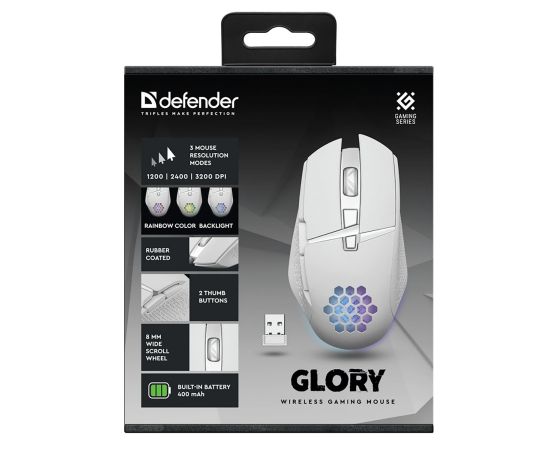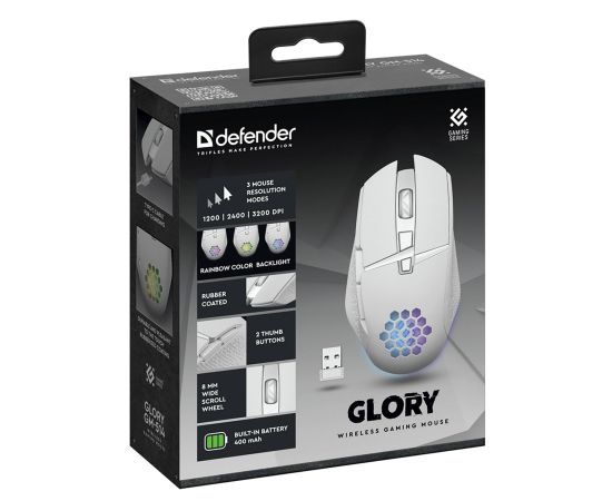 Мышь оптическая беспроводная Defender Glory GM-514 400 мАч,3200dpi, игровая (white) (237338)