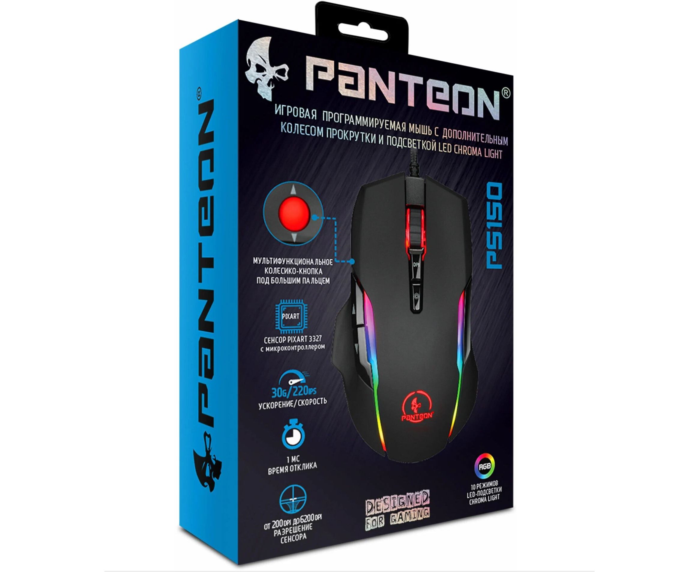 Мышь Panteon PS150 черная (Pixart 3327 с микроконтроллером, с доп. колесом прокрутки с подсветкой LED RGB CHROMA LIGHT)