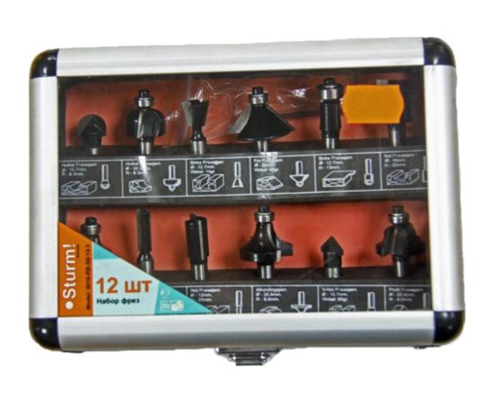 Набор фрез Sturm 9016-RB-S8-12-3 предназначен для фрезеров Штурм. В набор входят конические и цилиндрические фрезы. Набор предназначен для столярных работ как в мастерских, так и на производстве.