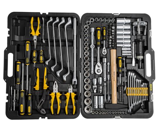 1/4" (Super Lock): 6, 7, 8, 9, 10, 11, 12 мм; длинные 1/4" (Super Lock): 8,10,12 мм; Torx 1/4": E4, E5, E6, E7, E8; трещетка 1/4": 45 зубов; вороток т-образный 1/4": 110 мм; удлинитель 1/4": 50, 100 мм; гибкий удлинитель 1/4": 150 мм; карданный шарнир 1/4"; 1/2" (Super Lock): 13, 14, 15, 16, 17, 18, 19, 20, 21, 22, 24, 25, 27, 30, 32 мм; длинные 1/2" (Super Lock): 13, 14, 17, 19, 24, 27 мм; Torx 1/2": Е10, Е11, Е12, Е14, Е16 Е18, Е20, Е22; свечные 1/2": 16, 21 мм; трещетка 1/2": 45 зубов; вороток с шарниром 1/2": 375 мм; удлинитель 1/2": 125, 250 мм; карданный шарнир 1/2"