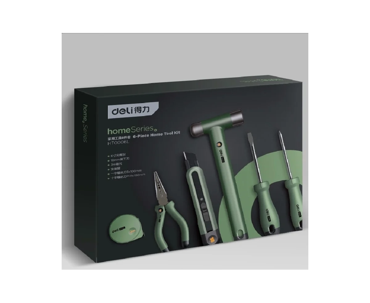 Набор ручного инструмента DELI Home Series Green HT0006L предназначен для проведения различных монтажных и ремонтных работ.